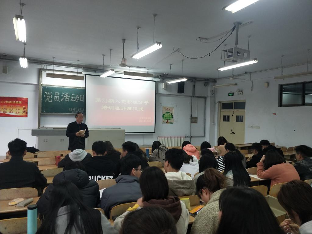 会上,焦书记阐述了举办入党积极分子培训班的意义,希望广大学员做到思想重视、勤于思考,认真学习相关材料,珍惜此次培训机会,争取最大收获,争做有志气的青年。焦书记向学员解释了什么是党,为什么要加入中国共产党,共产党的宗旨是什么,从而进一步提高了入党积极分子对党的认识,端正了入党动机,明确了入党目的,坚定了理想信念。