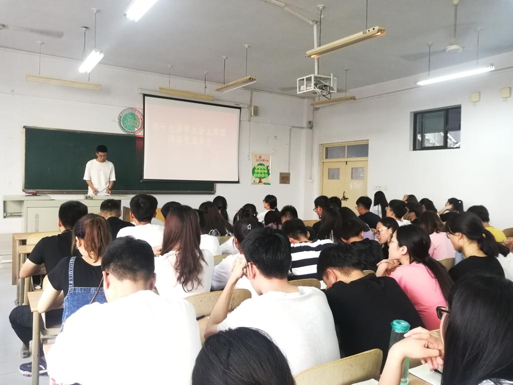 学生会是学生自我管理,自我教育,自我服务的群众性组织,是学校教育的重要力量。建立健全学生会组织,对发扬民主,培养自我管理能力,协助学校管理工作都具有十分重要的意义。会议开始由主持人介绍竞选规则,随后竞选主席、副主席兼秘书长及副主席的竞选者依次上台演讲。各位候选人分别从自身特点、对竞选岗位的认知、进入学生会以来的工作总结以及对未来工作设想等方面作出讲解。竞选者通过这种方式来表明自己对待工作的态度,展现自己的竞选优势。他们的精彩演讲赢得了在场所有人的阵阵掌声。会议最后,由学生会第十六届主席团及现任各部部长通过投票选出最终第十七届主席团成员。
