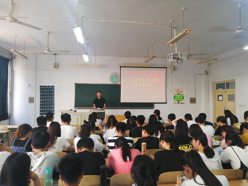 6月11日下午,ok138电子官方网站全体学生会成员在求实楼1007教室举行了第十七届主席团换届竞选大会。党总支副书记夏书珍,辅导员周向军、郑金召出席了本次会议。