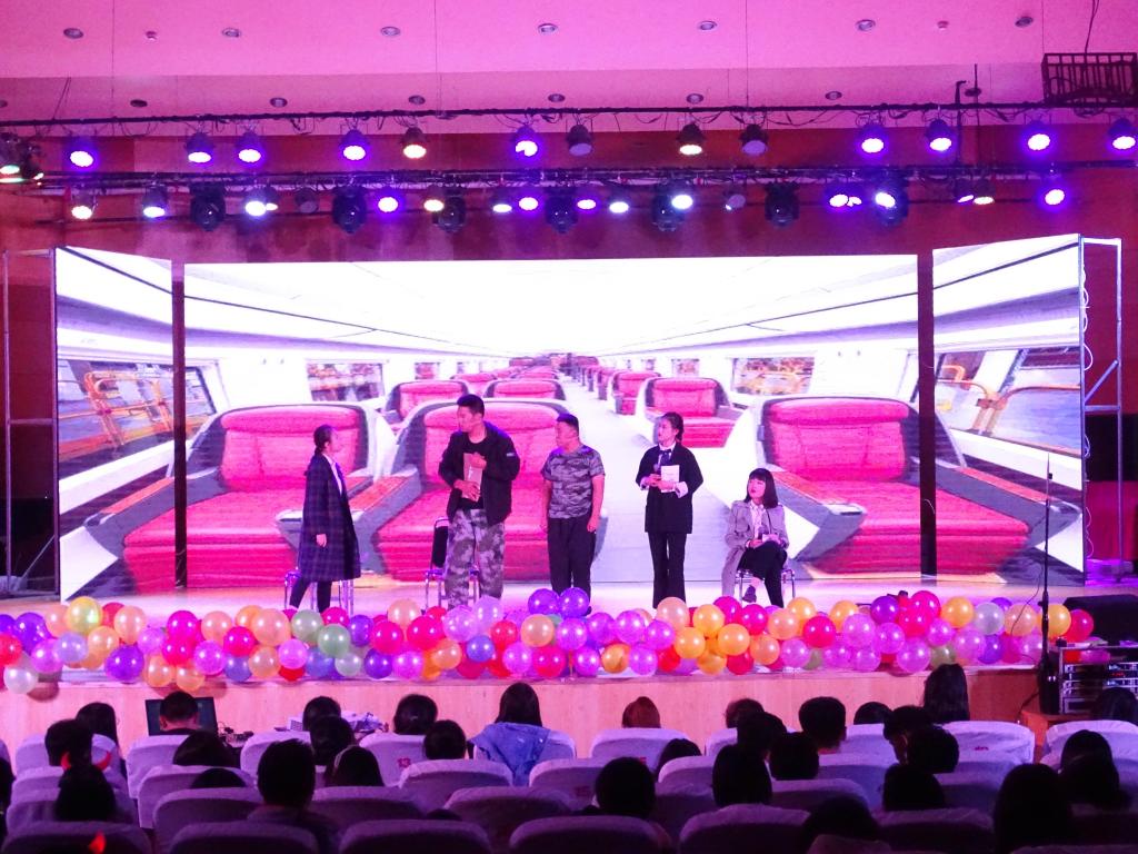 10月19日早上8点,ok138电子官方网站的演出人员和志愿者们就已经紧锣密鼓的准备这场盛宴,从布置舞台到演员的化妆工作,大家马不停蹄,只为夜幕降临时的精彩绽放。流光溢彩迎新夜,心心连新齐飞扬。晚会由激情洋溢的开场舞开幕,从一开始就带动了全场的气氛。晚会的节目一个接一个的呈现在观众眼前,本次晚会节目内容丰富,幽默的默剧《过安检》,演员的滑稽表演,呆萌的动作逗的全场哈哈大笑;动感富有创新的歌舞串烧使得现场欢呼阵阵;抒情歌曲《你不知道的事》、《面具》等轻轻敲击新生们的心扉;一首二胡独奏,全场的气氛达到了高潮,最后,在《无名之辈》的歌声中,长达两个小时的充满激情和欢乐的晚会完美落幕。