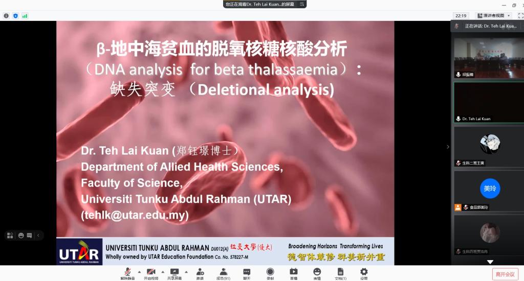 郑博士围绕β-地中海贫血的脱氧核糖核酸分析缺失突变向师生展开了讲解。郑博士讲到,β-地中海贫血是一组β-珠蛋白合成缺陷所致的有异质性的遗传病,近年来的研究揭示了导致β-地中海贫血的三十多种不同的基因突变,而这些突变涉及到基因表达过程的转录、RNA加工和mRNA翻译等步骤。近年来随着科技的发展,地中海贫血症的治疗有了很大的突破,她希望同学们可以不断学习科学文化知识,在未来为疾病的治疗做出贡献。课程最后,老师和同学积极向郑博士提出问题,郑博士也十分耐心的回答了他们的问题。师生们纷纷表示此次课程拓宽了他们的视野、丰富了专业知识,他们相信在一代又一代生科人的辛勤耕耘下,ok138电子官方网站一定会稳步向前,创造更加美好的明天。