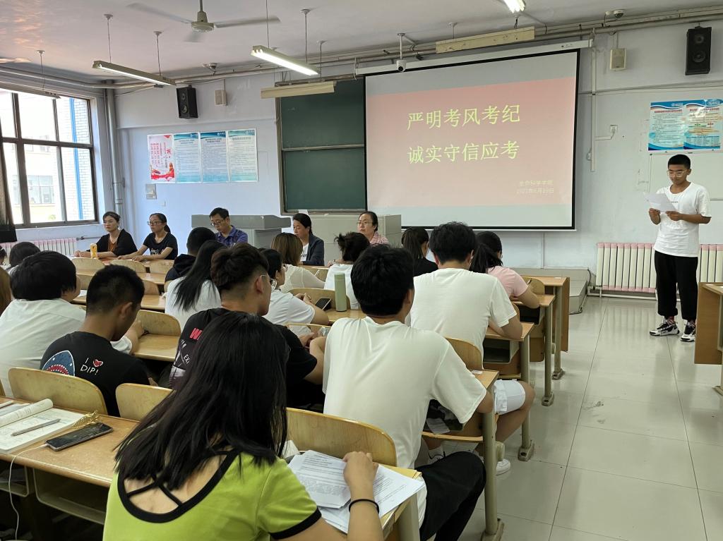 接下来,王艳洁老师进行了考风考纪思想教育工作,对学生现存的考风问题做出深刻的剖析,并要求各班签好零作弊承诺书。党总支副书记夏书珍也列举了一些考生因考试作弊受到严重处分的案例,让大家引以为戒,能够自觉对待考试。同时,她强调了在接下来的期末考试中考风考纪的严肃性和重要性以及对考试违纪相关处理的认知,并鼓励大家端正学习态度,积极备考,力争在期末考试取得优异成绩。