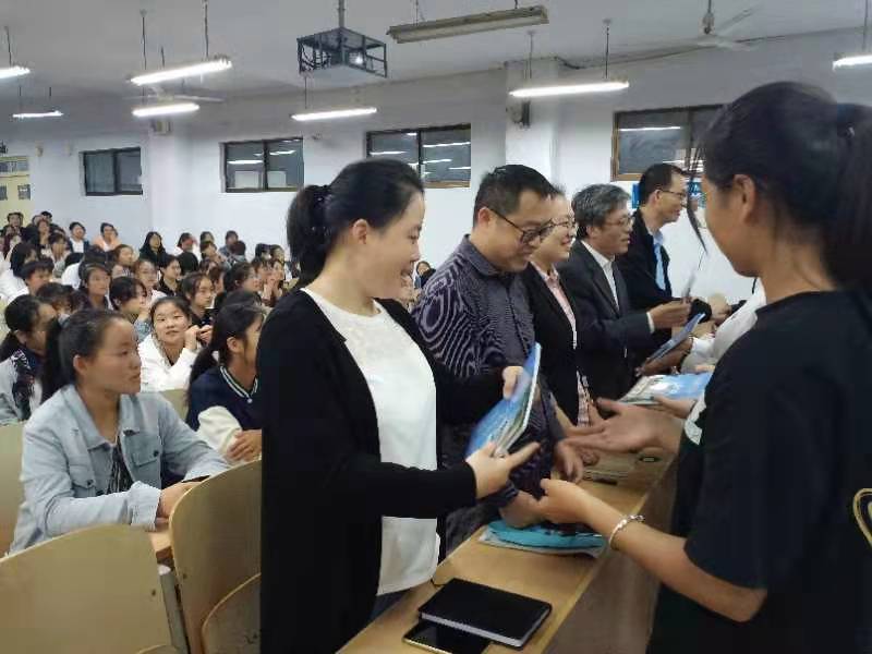 生科院主要负责人首先以优秀校友的典型事迹来感染新生,介绍优秀校友发展现状,以榜样的力量,引导他们入学开始就要合理制定学业规划、能力提升规划等学习成长目标计划,开好头起好步,筑梦起航。随后,向新生们介绍了我院实行的“双导师制”及其成效,双导师制要求导师们既要高效指导学业,还要引导学生完善品格、学会做人、学会做事等,通过实施“双导师”,为学业学习、思想成长等保驾护航。最后,学院领导和老师们将印制精美的册子-《ok138电子官方网站优秀校友名录》,赠送给每位新生,勉励大家以优秀校友为榜样,紧扣时代脉搏,珍惜韶华,不负青春,增长才干,锤炼品格,牢牢把握人生正确航向,为谱写出华丽的青春乐章,成就更加美好的未来,奠定坚实基础。