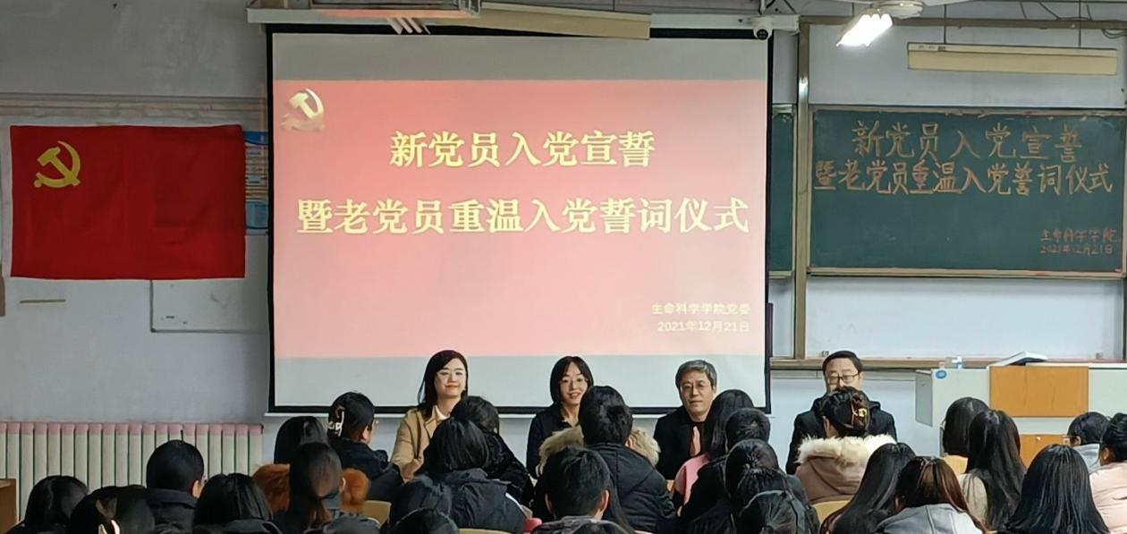伴随着庄严的《国际歌》,在学生党员魏家宝同志的带领下,全体党员面对党旗高举右手,庄严宣誓:我志愿加入中国共产党,拥护党的纲领……随时准备为党和人民牺牲一切,永不叛党。全体党员用发自内心的声音抒发了自己对党忠诚的决心。仪式最后,党委书记赵庆福同志表示,在建党一百周年这个历史交汇期光荣入党,是非常幸运的,希望党员同志们不辜负党组织的期望,自觉增强党性修养,以实际行动践行入党誓言,践行党的宗旨,发扬党的优良传统,充分发挥党员的先锋模范作用,无愧于共产党员的光荣称号!