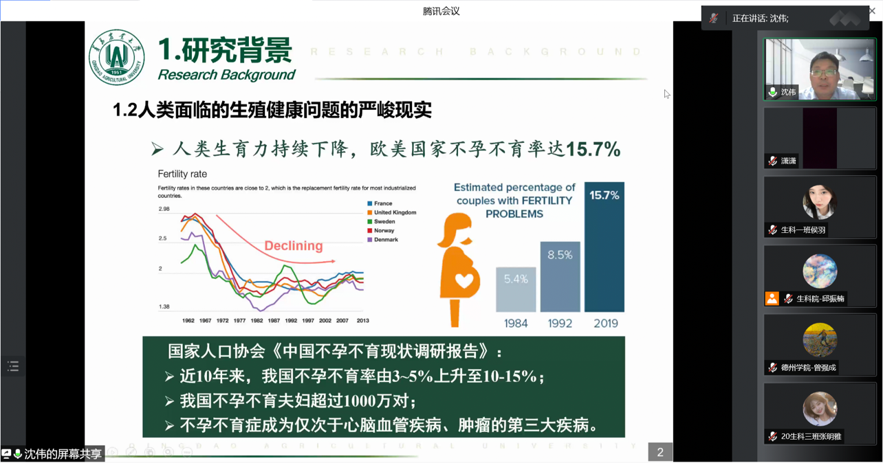 沈教授以现阶段面临的严峻的生殖健康问题为切入点,提出了辅助生殖技术新的发展方向,并从辅助生殖技术的研究背景、研究内容和研究成果三个板块进行多角度、宽领域、深层次地讲解,展示了当下科技与生殖科学融合的最新研究成果。课程最后,师生们围绕报告内容踊跃提问,与沈教授进行了深入的交流与互动,学术气氛十分浓厚。