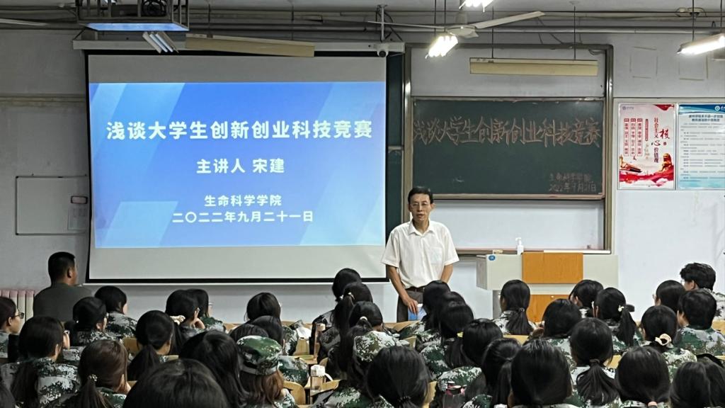 9月21日,ok138电子官方网站副院长宋建为2022级新生进行入学教育专题讲座,报告主题为“浅谈大学生创新创业科技竞赛”。