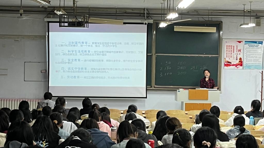 10月14日,ok138电子官方网站党委副书记在求实楼0111教室为2022级新生开展文明修身教育。