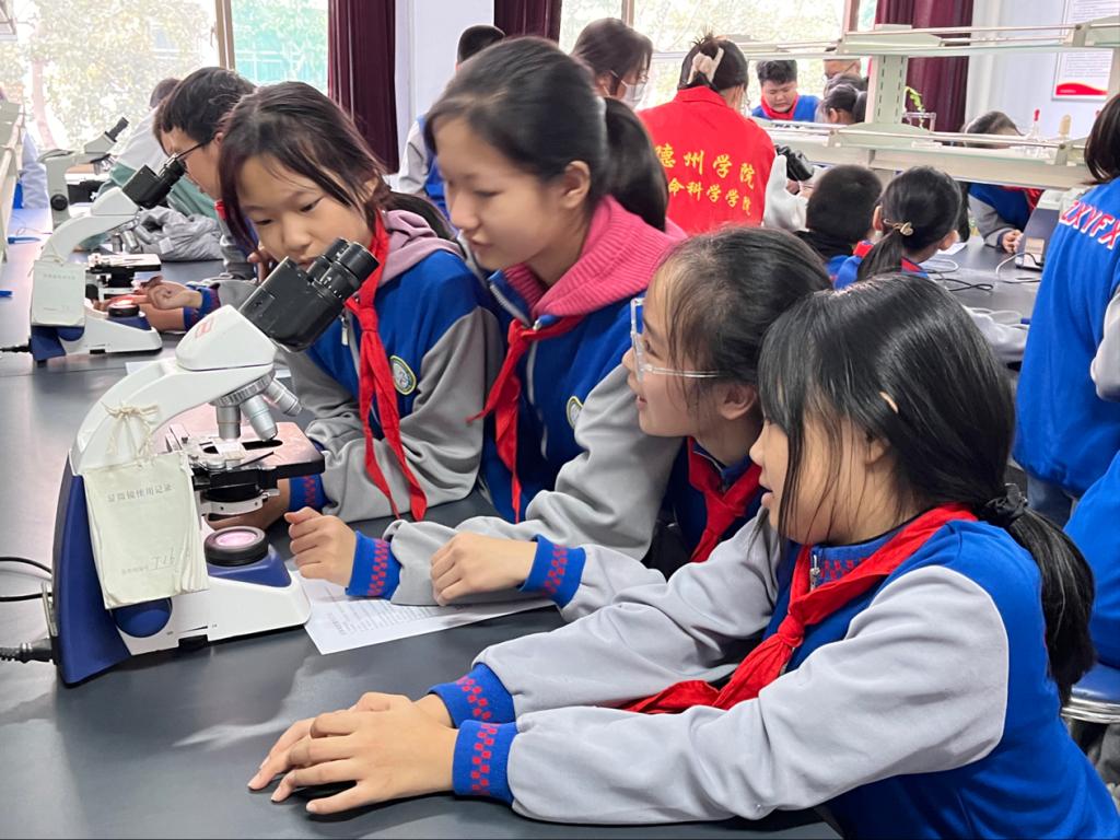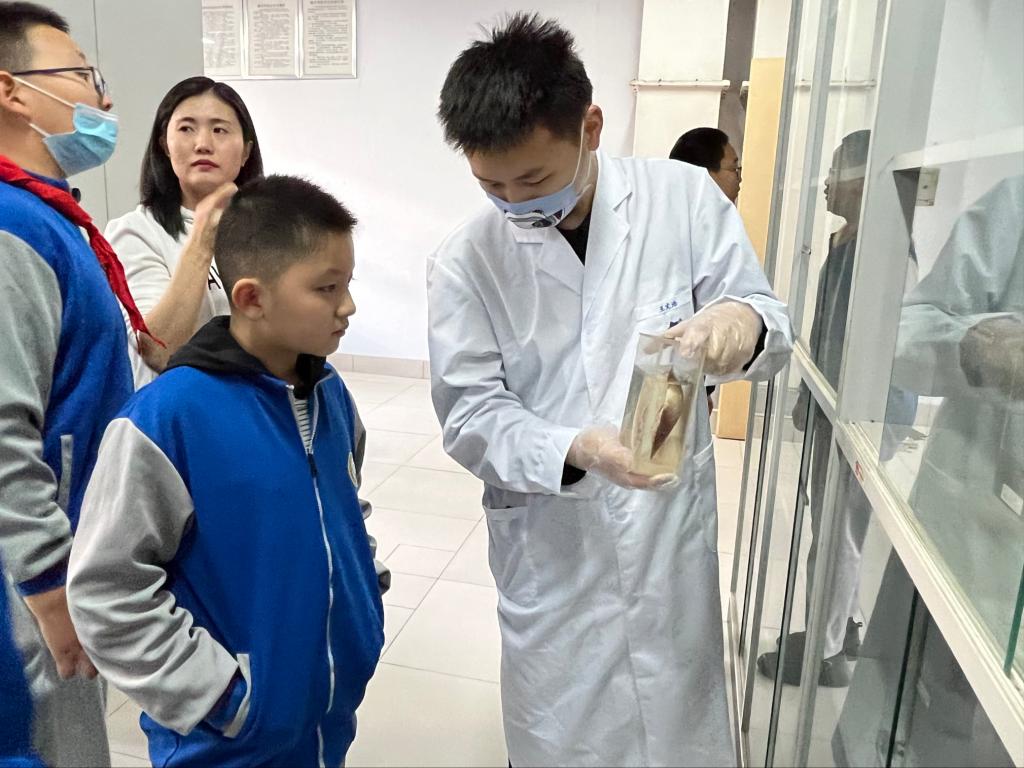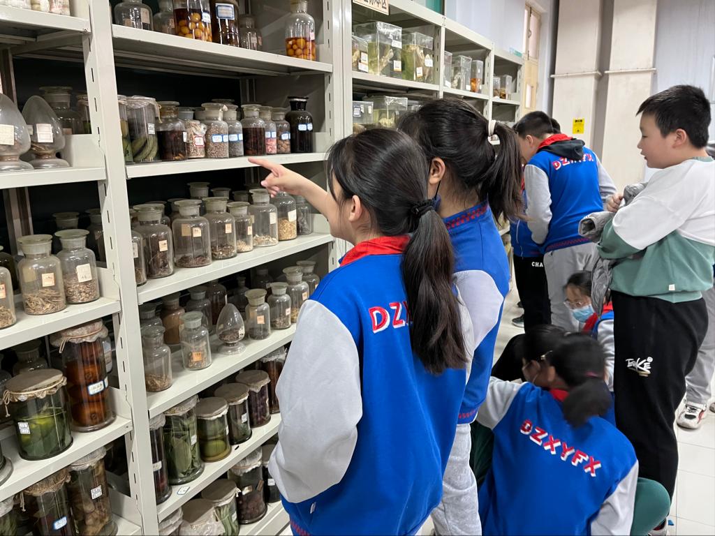 课堂上,2021级生物科学专业的师范生为附小六年级学生展示了植物细胞的结构图,详细介绍了显微镜及其使用方法,并带领他们一起动手实践,观察洋葱表皮细胞的形态。同时,志愿者们还为小朋友们介绍了动物学和生态学的相关知识,教育引导他们热爱生活,认真对待每一个生命,从小事做起,保护生态环境。志愿者们还带领小朋友们参观了动植物标本展览室,观察了多种多样的动植物标本、病理学标本,大大激发了小朋友们的学习兴趣。