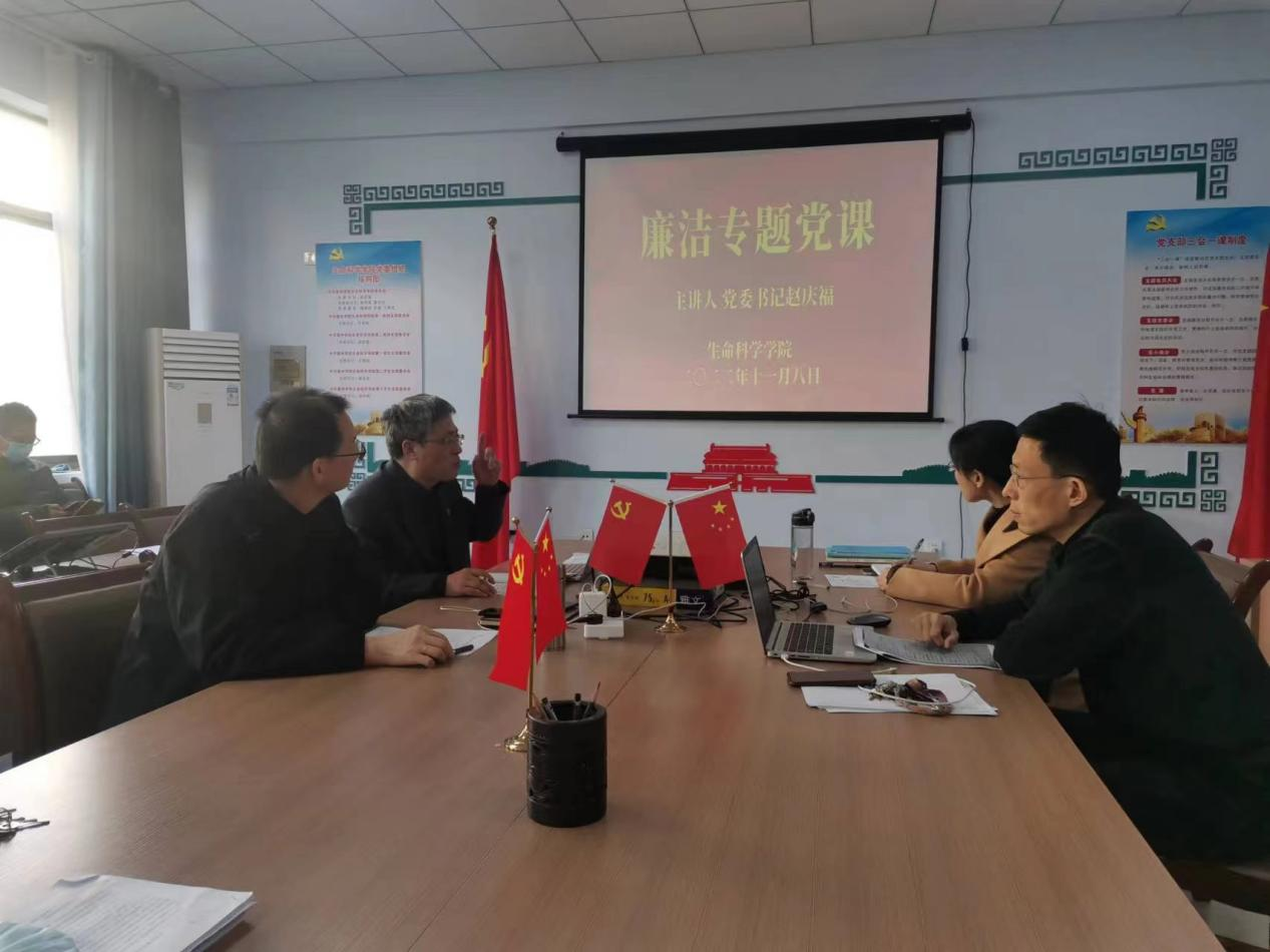 10月25日,ok138电子官方网站党委书记赵庆福在求实楼0204会议室讲授廉洁专题党课。生科院全体教职工听取学习了此次党课。