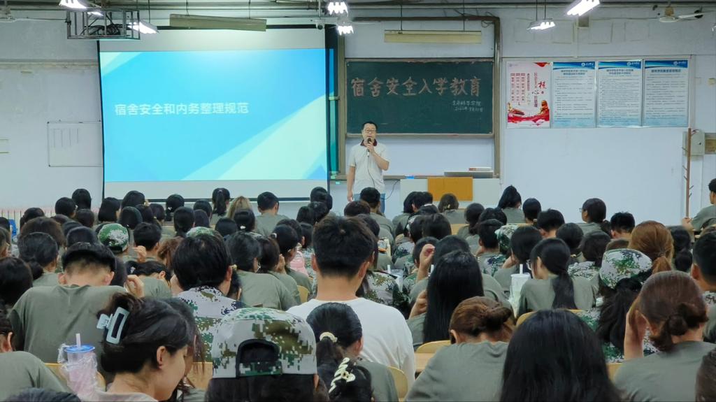 会上,他分别从宿舍用电安全、财产安全、人身安全等方面结合校规校纪和日常行为规范进行讲解,号召2023级新生贯彻“平安校园,安全宿舍”的意识,自觉遵守宿舍安全守则,争做优秀文明大学生。随后,他分别就宿舍安全规范、内务标准等方面进行讲解,明确了新生寝室内务要求,增强了他们对宿舍内务管理制度的理解。