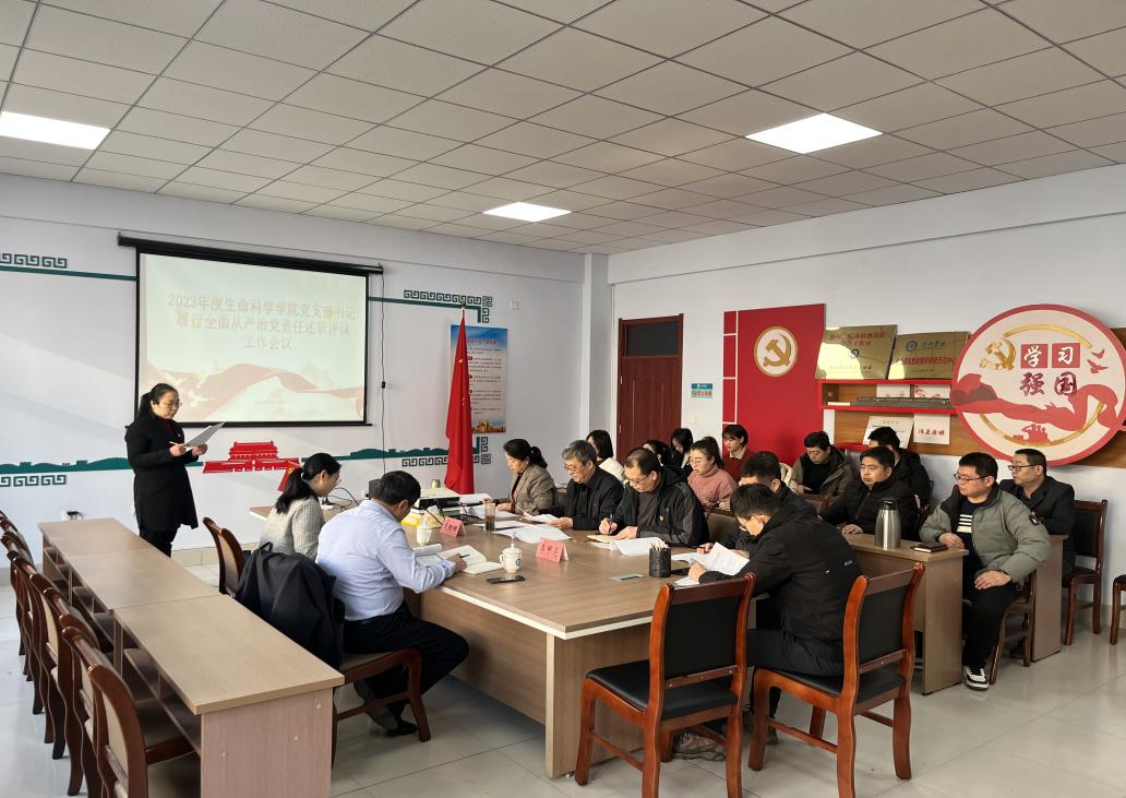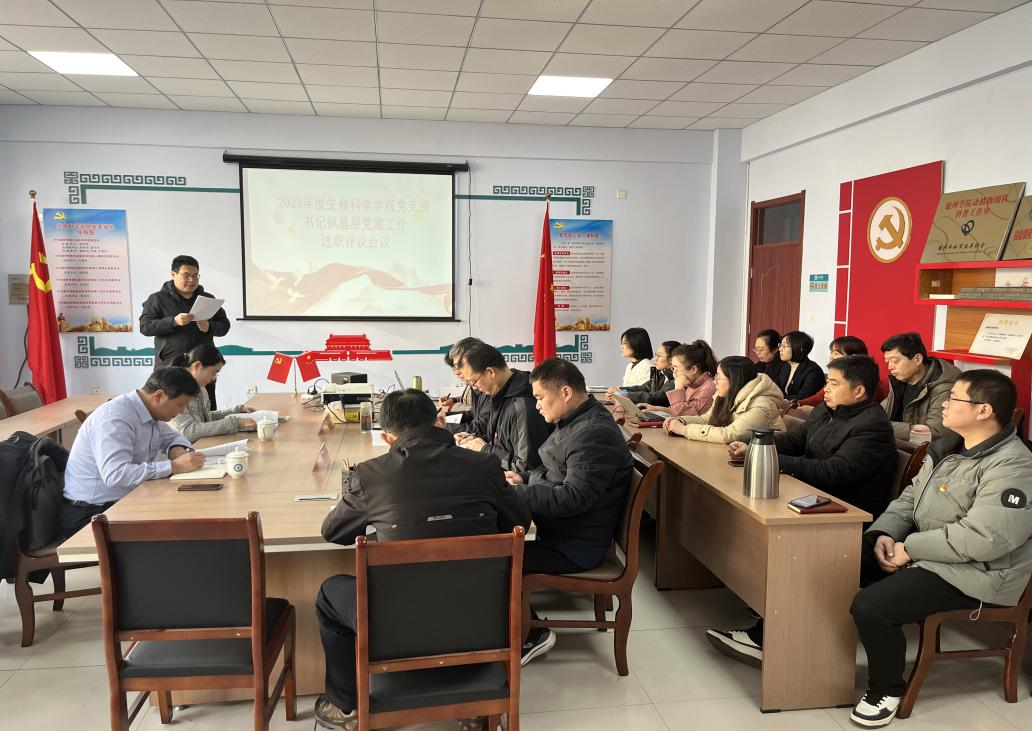 2024年1月15日,ok138电子官方网站在求实楼0204会议室召开2023年度党支部书记履行全面从严治党责任暨抓基层党建工作述职评议会议,校党委委员、副校长李甲亮和校党委副处级组织员武珊珊两位同志列席会议指导工作,与会人员包括生科院党委委员、基层党支部书记、支委会委员、工会代表和全体科级干部。