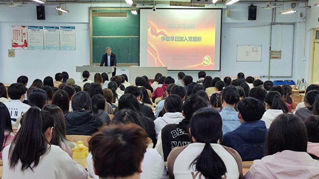 会议伊始,王琦老师向全体学员介绍了本期培训的课程设置和学时安排,对培训的组织纪律作着重强调。开班仪式结束后,党委书记赵庆福同志为各位学员作“端正入党动机,争取早日加入党组织”主题讲座,他强调全体学员要端正入党动机,认真学好党的理论知识,注重学习实效,做到知行合一。随后,赵书记表示全体学员要以党员的标准严格要求自己,坚定共产主义信念,自觉接受党的考验,尽早的成为一个立场坚定、忠诚于党的事业的先锋战士。最后,赵书记希望全体学员充分认识开展培训的重要性,把习近平新时代中国特色社会主义思想转化为坚定理想、锤炼党性、指导实践、推动学习的强大力量,以实际行动争取早日加入中国共产党。