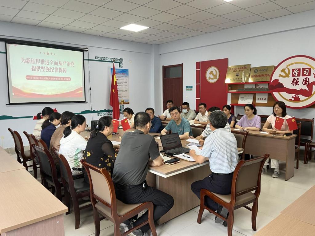 在全体党员大会上,党委书记赵庆福同志以“为新征程推进全面从严治党提供坚强纪律保障”为主题,从4个方面对《条例》进行解读:一是《条例》形成和发展的脉络;二是《条例》修订的重要意义;三是《条例》修订的主要内容;四是学习贯彻《条例》的具体要求;最后,赵书记结合本单位工作实际,为各位党员教师详细梳理各类容易违反纪律规定的风险点,进一步强化党员纪律意识。党员教师们结合个人实际,积极分享了对《条例》的理解和认识,坚持逐章逐条学、联系实际学,推动《条例》入脑入心,将自觉发挥先锋模范作用,通过学习和实践,不断提升政治觉悟和纪律观念。
