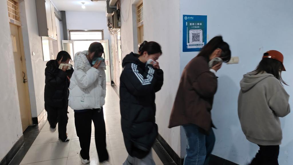 随着哨声响起,消防应急疏散演练正式开始。同学们在宿舍楼内迅速响应,他们用湿毛巾捂住口鼻,按照预先设定的疏散路线,沿着墙面摸索弯腰前行,有序地撤离到安全区域。演练流程规范,井然有序,消防通道畅通,无一学生遗漏,无拥挤意外发生,达到了预期效果。整个过程中,同学们展现出了高度的纪律性和自我保护意识。演练结束后,周向军老师鼓励大家以此次演练为契机,进一步加强学习,不仅要了解基本的消防知识,还要掌握正确的逃生自救技能,确保在紧急情况下能够迅速有效地采取行动,共同守护我们的美好校园。