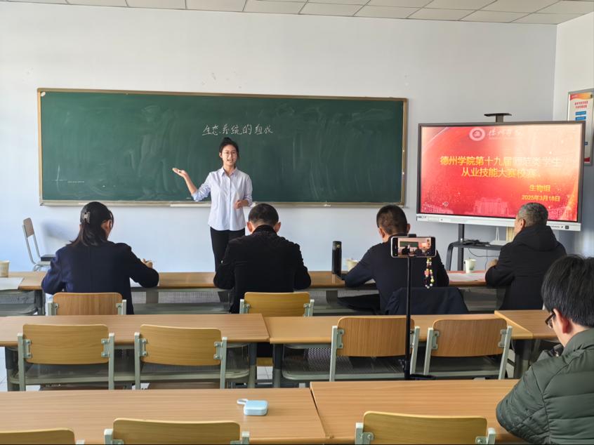 3月18日,ok138电子官方网站在求索楼0319教室成功举办了第十九届师范类学生从业技能大赛生物组校赛。此次大赛旨在提升同学们的教学技能与职业素养,为培育优秀的生物学科师资力量提供助力。本次比赛邀请崇德中学、德州二中、德州九中等中学一线教师和校内教学名师、教学骨干担任此次比赛的评委。