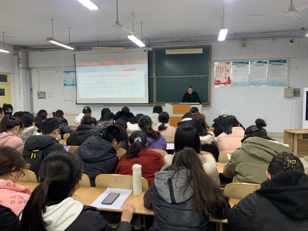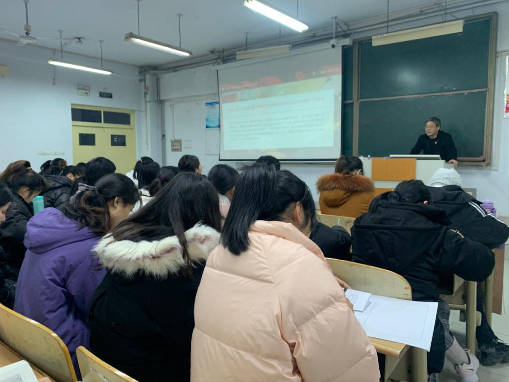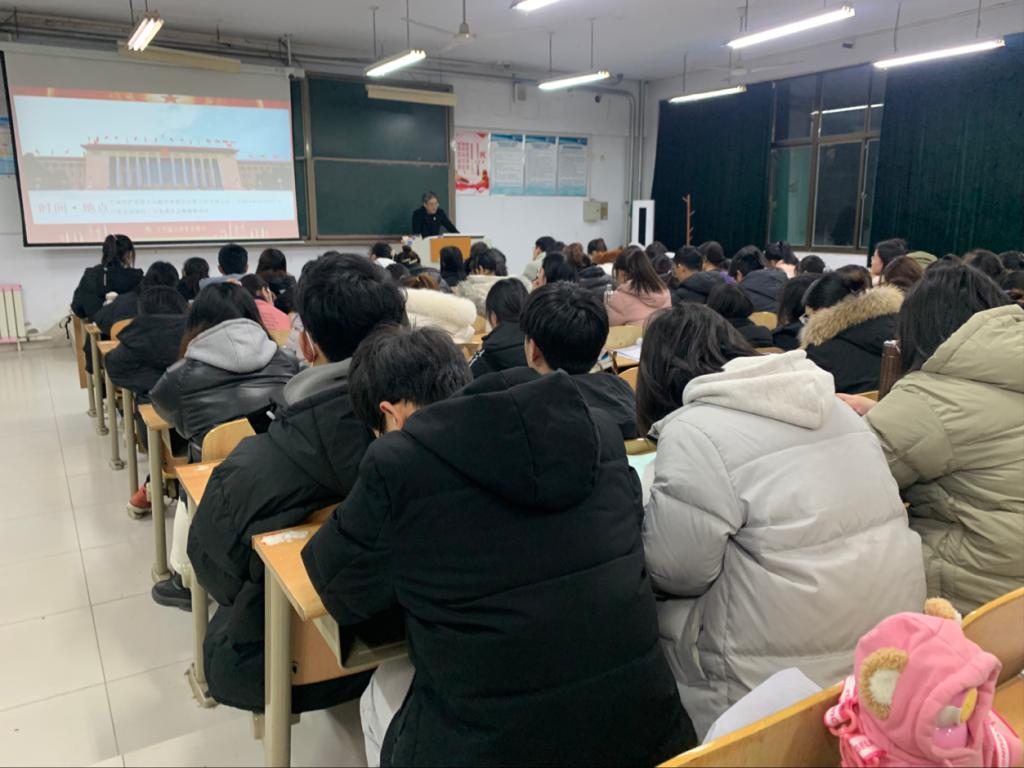 12月22日,ok138电子官方网站党委书记赵庆福在求实楼0111教室,为全体学生党员宣讲党的十九届六中全会精神,结合当前国家发展和学生学习实际,全面阐释全会精神,鼓励同学们从党的百年历史中汲取奋斗的智慧和力量。