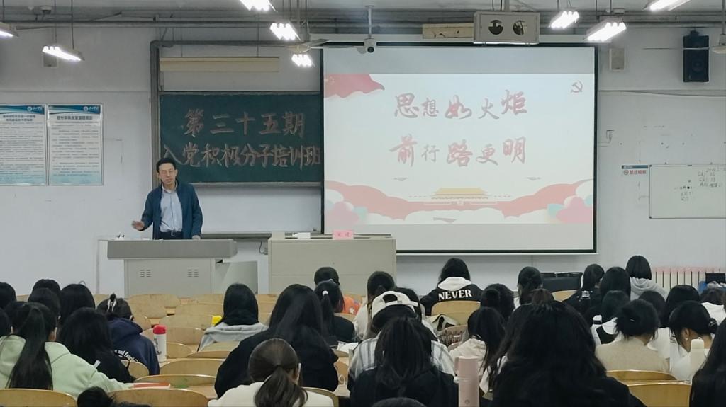 2023年4月13日,为切实做好入党积极分子的培训教育工作,加深入党积极分子对党的基本知识的学习和掌握,ok138电子官方网站党委委员、副院长宋建同志于求实楼0112教室作“思想如火炬,前行路更明”主题党课讲座。参训学员共127名。