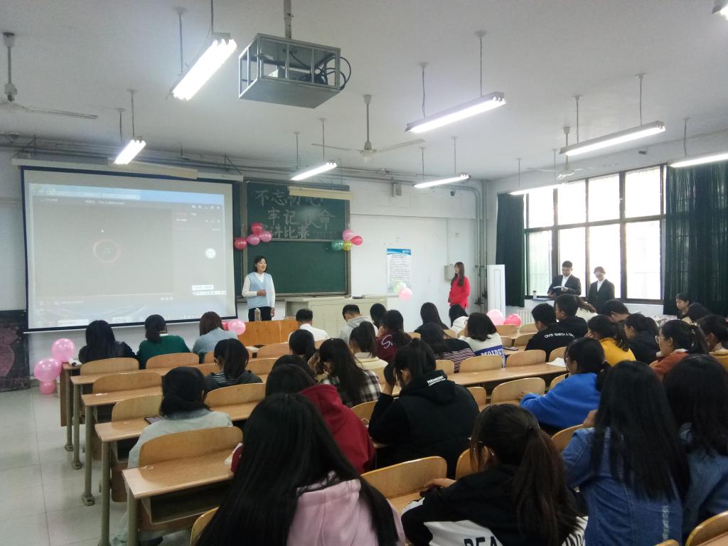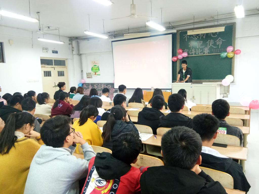 待人员全部到位,主持人简要介绍了比赛的目的和流程,比赛正式开始。每位上台演讲的同学都热情饱满、精心准备,争取有更加出色的表现。有的讲述了自己对“初心”的理解;有的介绍了当代青年学生的“使命”;有的列举了当代中国所取得的种种成绩。虽然内容大不相同,但每个人都慷慨激昂,底气十足。还有的同学准备了优美的背景音乐、精美的演示文稿,使演讲更加生动,震撼人心。台下的同学认真倾听,置身于感人的情节中,深深的为国家所取得的傲人成就而自豪。在心灵与心灵的碰撞中,在语言与图片的触动中,同学们都受益匪浅,演讲比赛也顺利结束了。