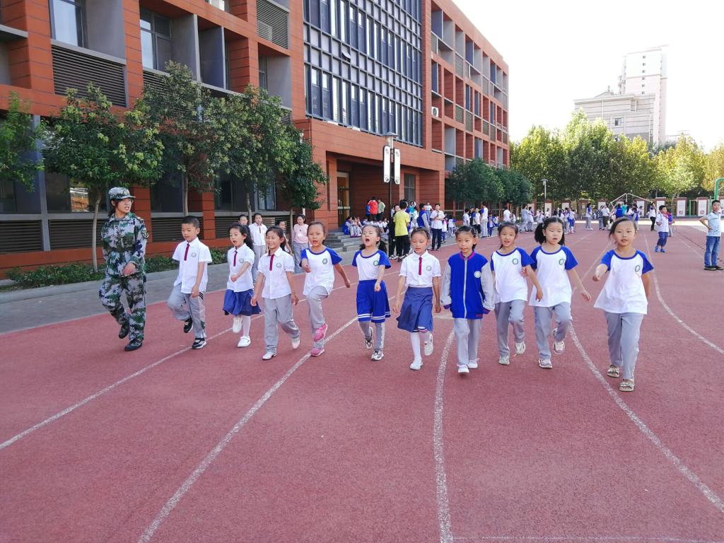 在中华人民共和国成立70周年到来之际,为了让孩子们感受军队精神,提高民族自豪感,同时锻炼孩子们的观察能力、肢体协调能力,提高他们的团结合作的意识。2019年9月24日下午,ok138电子官方网站在ok138电子官方网站附属小学特别举办“中华人民共和国成立70周年之开学第一课”军训走方队体验活动。