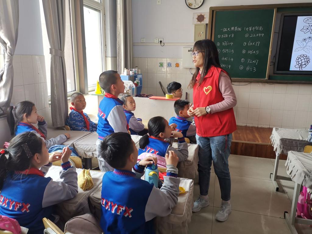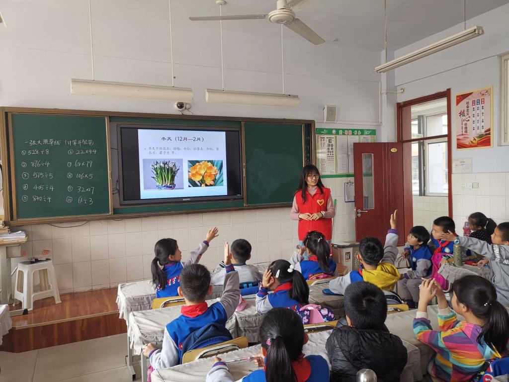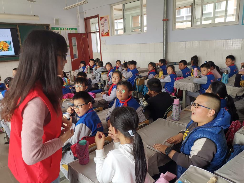 课堂开始,志愿者老师通过图片向小学生们展示了丰富多彩的花朵,这些五颜六色、形态各异的花朵,深深地吸引了小学生们的注意力。结合图片志愿者老师讲解了花的种类和结构,并告诉小学生们各个部位的作用。几分钟的交流讨论之后,志愿者老师针对于本次课堂内容提问,面对志愿者老师提出的问题小学生们对答如流。最后志愿者老师给同学们充分的时间自由发挥,画出自己心目中最喜欢的花朵,并与同学分享。