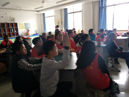 在课堂上,志愿者老师向同学们讲述了生态系统的组成,并分别介绍了生产者、消费者、分解者在生态系统中的作用。在此过程中,对于志愿者老师提出的问题同学们能够积极的思考并回答,其他志愿者则是和同学们坐在一起,以便给予他们必要的辅导,整堂课的氛围十分融洽。