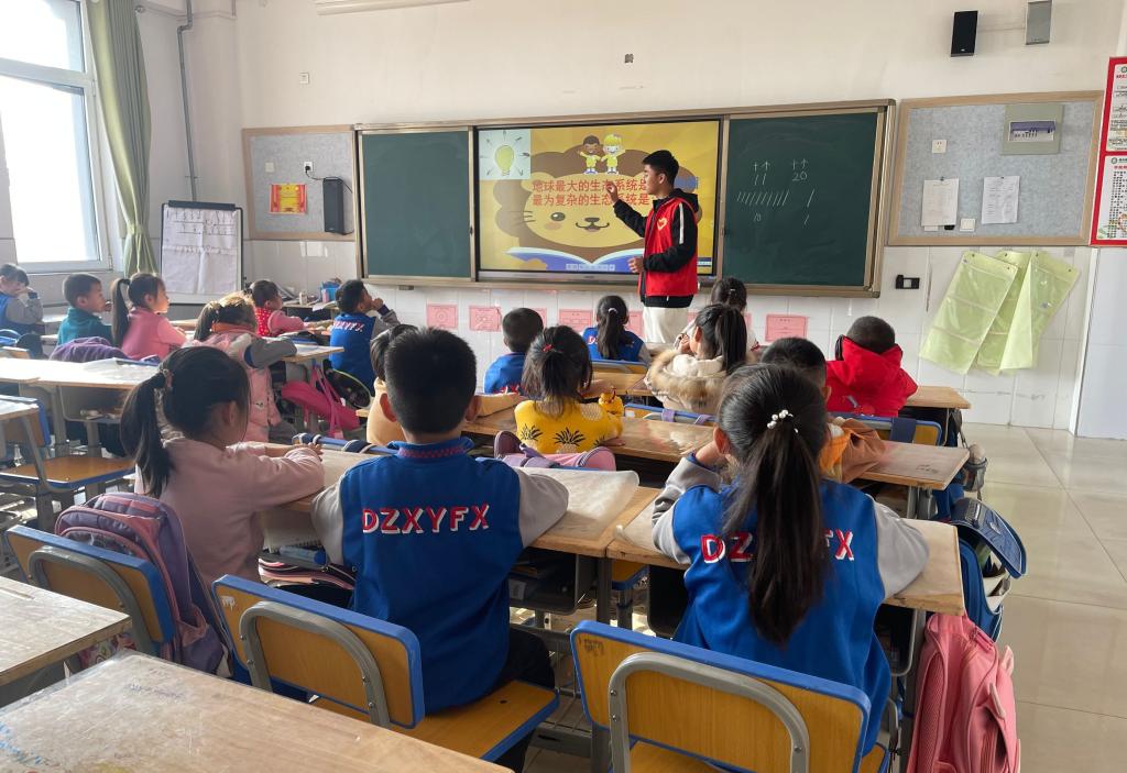 志愿者老师播放了有趣的视频,引导同学们思考什么是生态系统,同学们积极发言,就自己眼中的生态系统这一问题讲述了自己的想法。随后,老师又给同学们欣赏了美丽的风景照片,生动形象的讲解了目前生态系统所面临的问题和缓解问题的措施,同学们纷纷表示要热爱自然,保护生态系统。课堂的最后,老师给同学们讲述了党史小故事,希望同学们能够热爱祖国,铭记党史,传承红色基因,肩负起时代的重任。