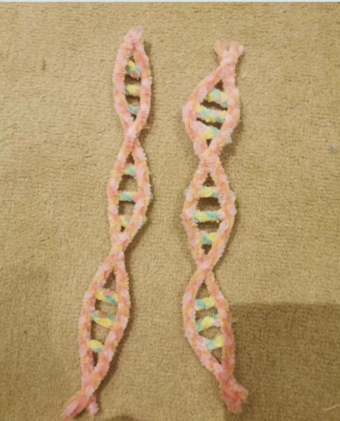 活动伊始,主讲人向同学们介绍了DNA双螺旋结构及利用扭扭棒模拟 DNA 分子结构的方法并展示了优秀的细胞模型作品。随后,志愿者们分发扭扭棒和制作工具,同学们运用所学DNA分子的结构理论知识并充分发挥想象力,将一根根扭扭棒精心组合,制作出一个个精美又富有创意的模型。作品完成后,各小组依序分享创作灵感与思路。同学们畅言,此次活动既丰富了 DNA 知识,又在创作中尽享乐趣,更搭建起展示自我的舞台,收获满满。
