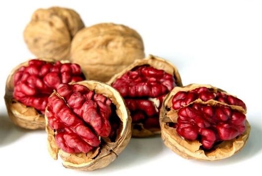 据《陕西林业科技》2017年最新出版的一期文献 , 美国红仁核桃是世界稀有特色核桃品种,由美国加利福尼亚大学于1978年通过人工杂交选育而成。与我国传统的普通核桃相比,因其内果皮富含花色苷,不仅果仁皮色鲜红、彰显喜庆色彩,而且口感酥脆香甜,具有极高的营养价值和医疗保健作用,开发利用前景广阔。
