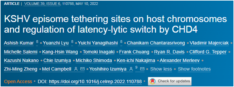 在一项新的研究中,来自加州大学戴维斯分校的研究人员发现癌细胞的细胞核中的一种蛋白是保持KSHV休眠和不被人体免疫系统发现的关键因子。相关研究结果发表在2022年5月10日的Cell Reports期刊上,论文标题为“KSHV episome tethering sites on host chromosomes and regulation of latency-lytic switch by CHD4”。