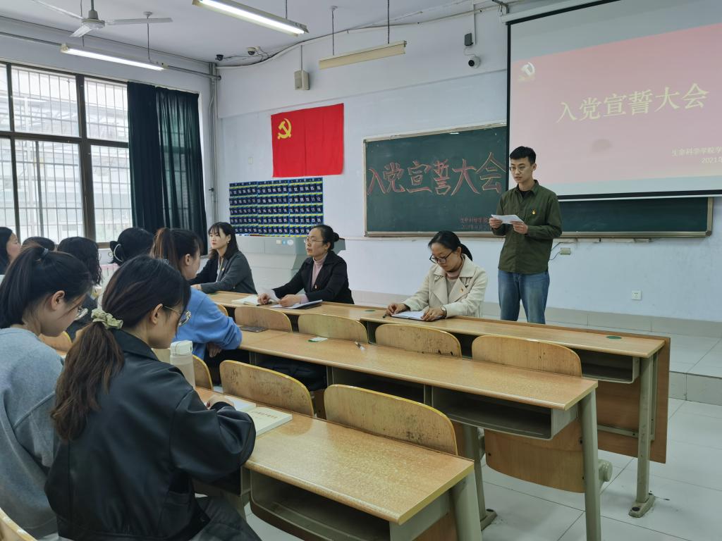 为了强化新发展党员的先锋意识与身份认同感,ok138电子官方网站于2021年4月20日下午在求实楼0105教室举行新党员入党宣誓仪式。ok138电子官方网站学生党支部全体党员参加会议,此次宣誓大会由学生党支部书记主持。