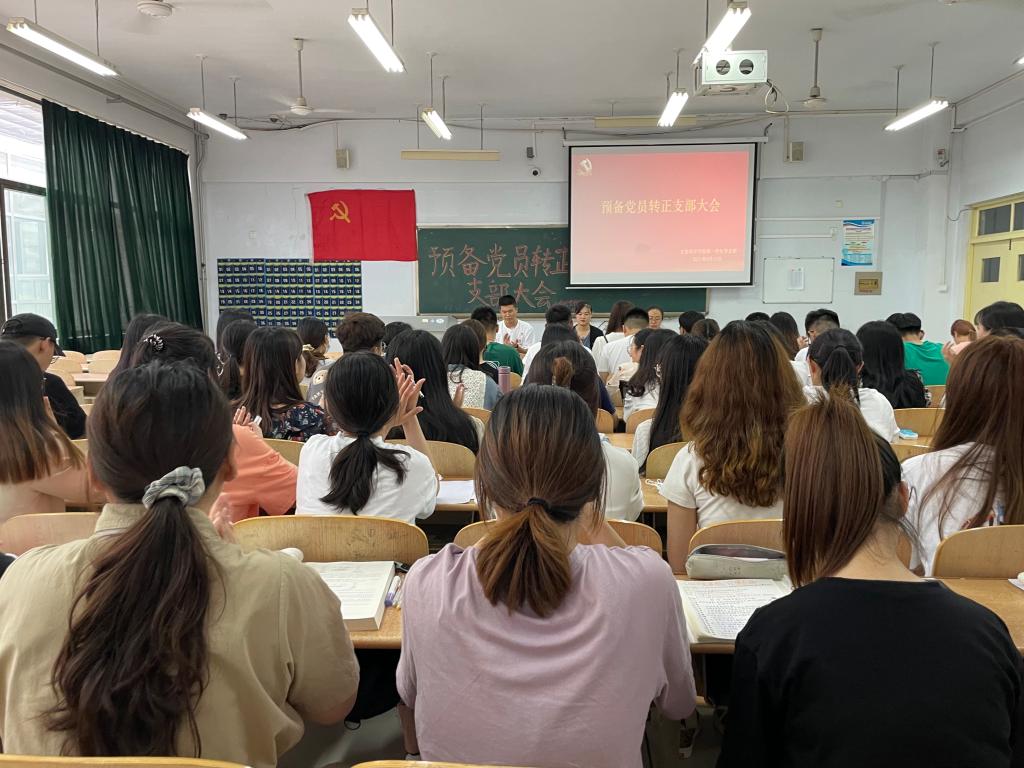 6月15日下午,ok138电子官方网站第一学生党支部在求实楼0105教室召开预备党员转正支部大会,会议严格按照发展党员工作实施细则执行,出席本次会议的有ok138电子官方网站第一学生党支部全体党员和入党介绍人老师。