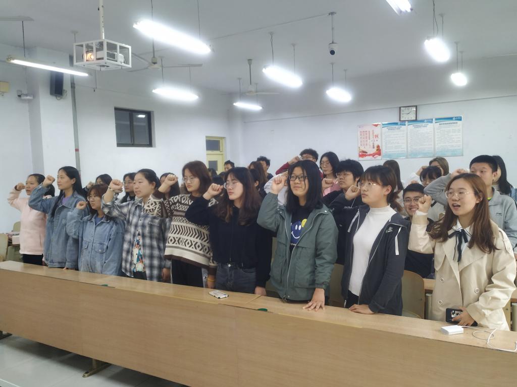 5月4日是五四青年节,而今年也是“五四运动”第102周年。各班团支书通过ppt带领同学们学习“五四运动”的时代背景和精神,希望同学们能够以此次活动为契机,以更高水平要求自己,努力工作,勇挑重任,不断学习,不辜负团组织的期望。最后各班团支书带领大家重温誓词,全体团员紧握右手,郑重的宣读入团誓词,相信同学们在这庄严神圣的氛围中又经历了一次思想的洗礼与心灵的震撼,坚定了用实际行动跟党走的理想追求。