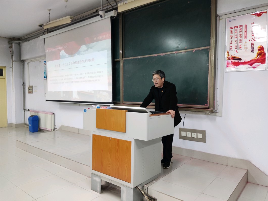 12月22日,为积极贯彻落实习近平总书记“把红色资源利用好、把红色传统发扬好、把红色基因传承好”的重要指示精神,深入推进党史学习教育,加强学校思想政治建设,ok138电子官方网站党委书记赵庆福于求实楼0111教室为师生党员上了一堂红色思政课。