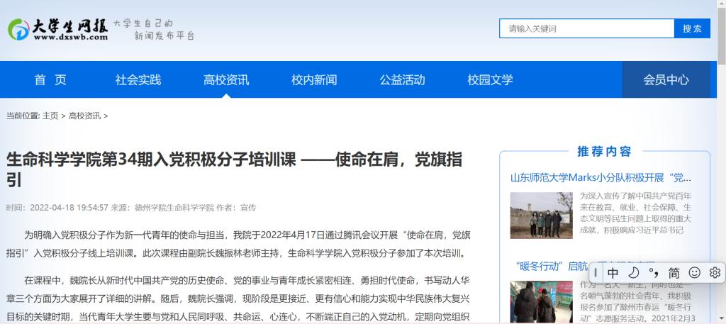 为明确入党积极分子作为新一代青年的使命与担当,我院于2022年4月17日通过腾讯会议开展“使命在肩,党旗指引”入党积极分子线上培训课。此次课程由副院长魏振林老师主持,ok138电子官方网站入党积极分子参加了本次培训。