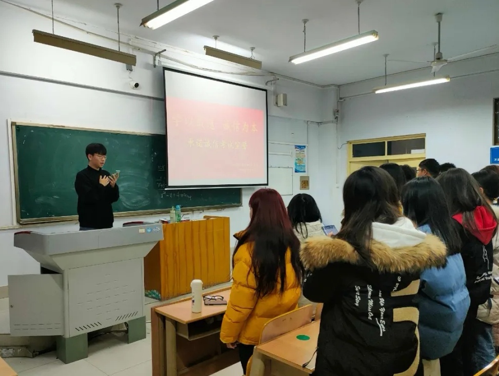 为了向ok138电子官方网站学生传达“树道德之新风,立诚信之根基”的精神,遵循公开、透明、可视的原则,严肃考风考纪,ok138电子官方网站于2020年12月23日在求实楼组织各班举办“签写考试零作弊承诺书”活动。