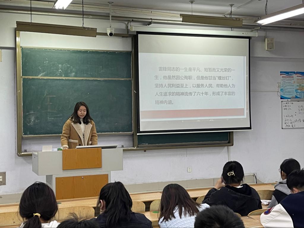 会上,各团支部书记带领团员们学习了解了雷锋的生平经历,引导大家学习雷锋精神,积极参加志愿服务活动,争当志愿服务的倡导者、弘扬者、践行者,以乘势而上的决心和干劲展现新时代新青年的良好风采。从身边做起、从小事做起,关爱他人、关爱社会、关爱自然,让“人人都做志愿者”成为一种行动自觉。与此同时,各团支部书记发起倡议,鼓励同学们从不带早餐进教室、自觉回收餐具、保持教室卫生、整齐停放共享单车等小事做起,积极弘扬雷锋精神,在校园中形成“人人学雷锋、天天学雷锋、时时有雷锋”的良好氛围,让雷锋精神焕发新时代文明光彩。