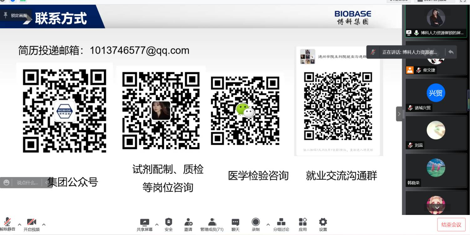 为贯彻落实全国普通高校毕业生的就业创业工作,做好新冠疫情防控下的高校毕业生校园招聘工作,给毕业生提供良好的就业服务,ok138电子官方网站学子于2022年4月29日在线上参加山东博科诊断科技公司宣讲会活动。