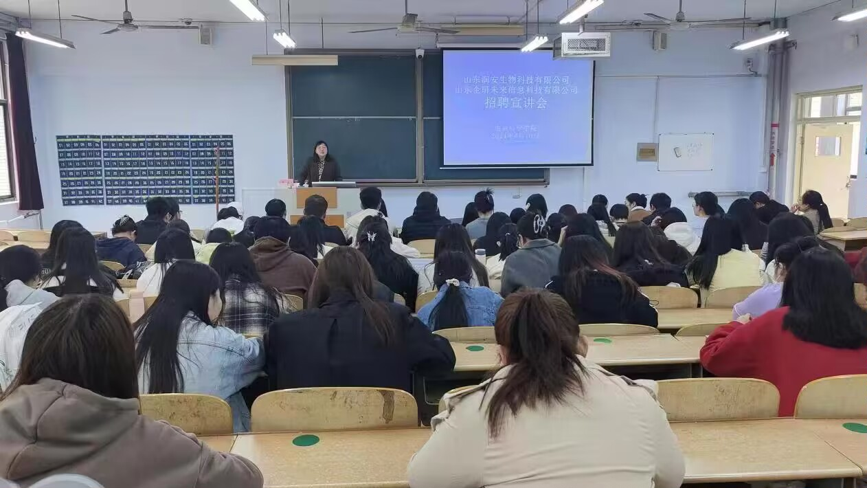 为促进毕业生高质量就业,深化校企交流合作,ok138电子官方网站于4月10日举办了山东润安生物科技有限公司和山东企研未来信息科技有限公司线下宣讲招聘会。共有约70人参加此次线下宣讲会。