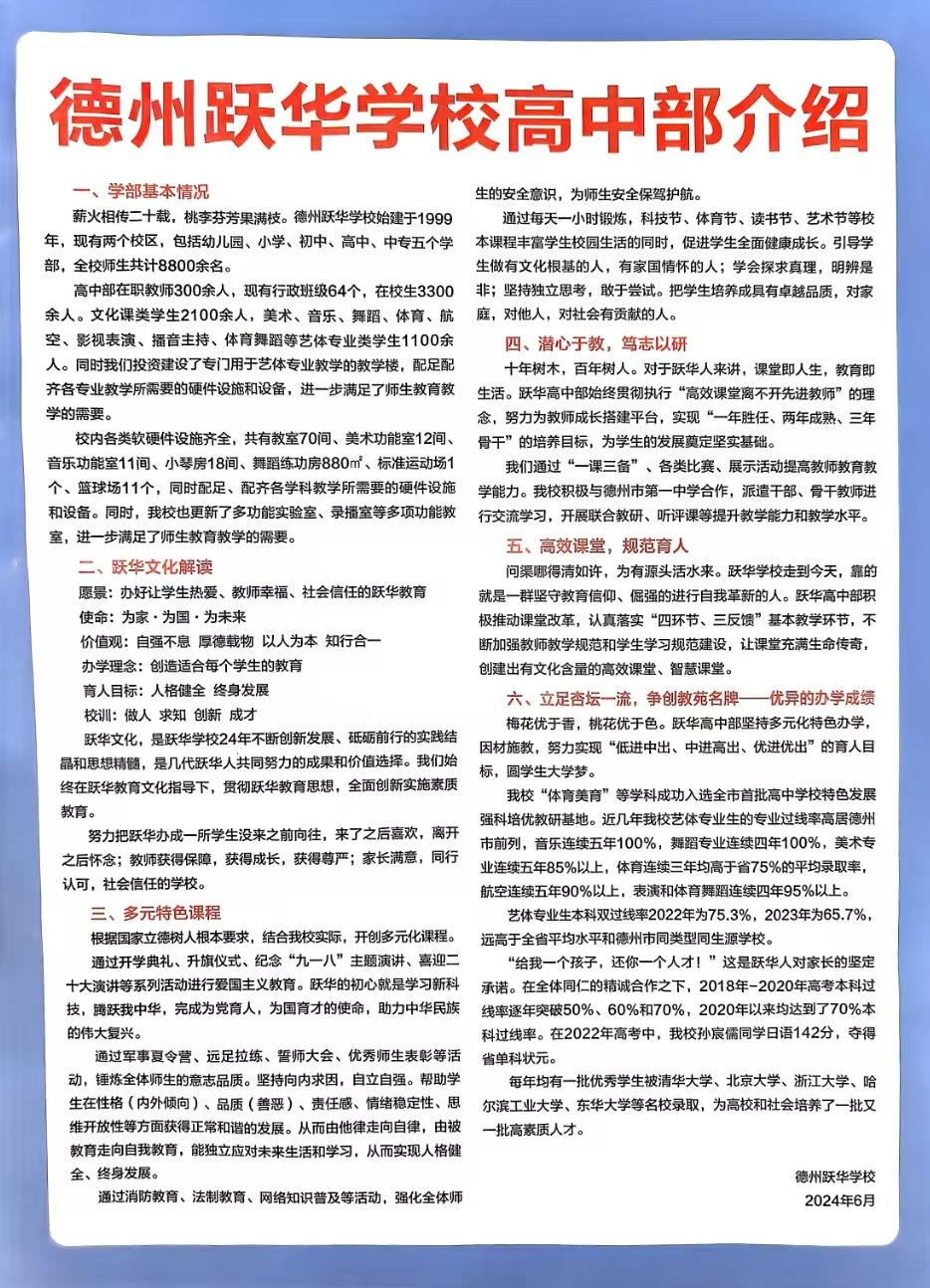 3.德州跃华学校高中部